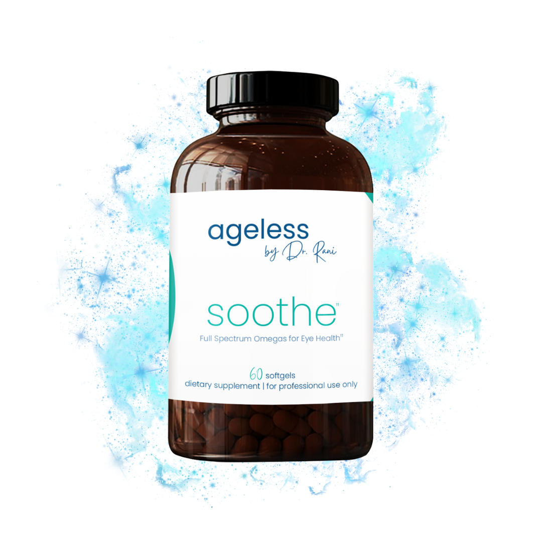 Inflammation is a root cause of macular degeneration, one of the leading causes of vision loss. Soothe, the third component of the Ageless Eyes Bundle, is a full spectrum essential omega blend that contains omega 3, 6, 7, and 9. This unique blend of essential fatty acids can help regulate inflammatory responses, reducing oxidative stress and supporting eye health. Additionally, Soothe also provides essential nourishment to dry eyes, helping to keep them healthy and hydrated.